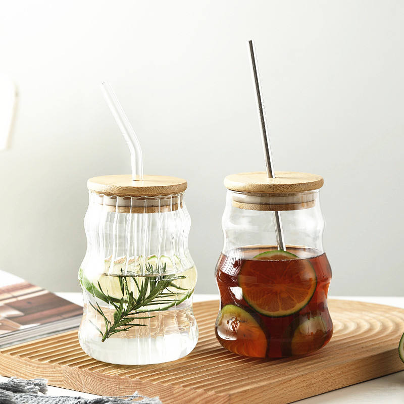 With Bamboo Lid & Glass Straw(straw color may vary)